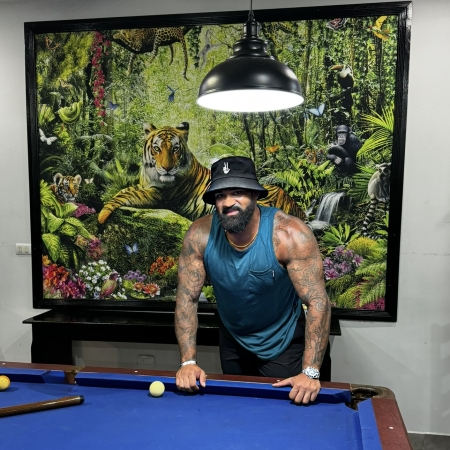 All of this happened while I was out of work, COVID shut the world down, gyms closed, and my two children were home full-time—one in kindergarten, learning how to read and write. I went from being highly active to stuck inside, rehabbing from three surgeries while trying to be a teacher and running a household. It was one of the hardest periods of my life. On top of that I was planning on getting a dog, a chocolate lab next year. The breeder contacted me and told me they had a puppy available for me. I had no clue how I was going to take care of this dog in my condition, but something told me I need it. That’s when Denzel the chocolate lab became a member of my family.